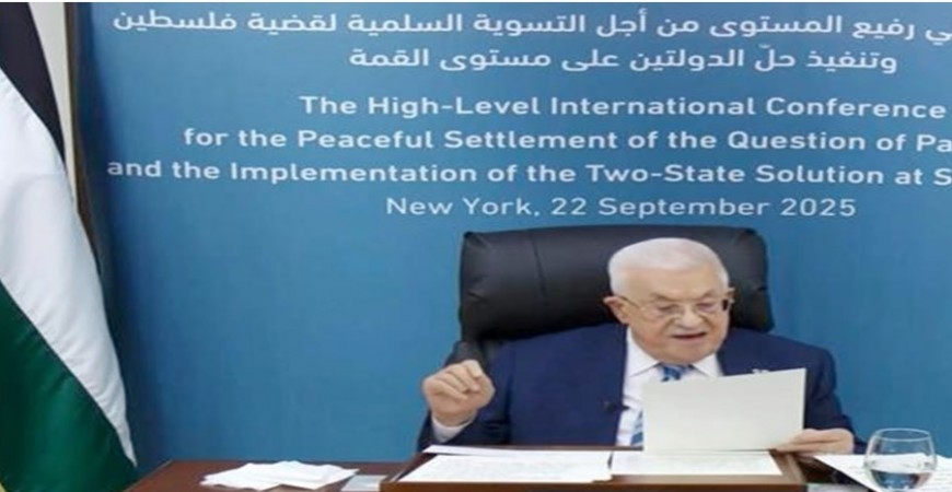 أُعبر باسمِ دولةِ فلسطينَ عنْ بالغِ التقديرِ للرئاسةِ المشتركةِ، وللأممِ المتحدة، ولكلِ الدولِ المشاركةِ، على ما صدرَ عنْ مؤتمرِ يوليو منْ إعلانِ نيويوركْ التاريخي ِالذي أقرّتْهُ الجمعيةُ العامةُ بأغلبية ٍساحقة، إيذاناً ببَدءِ خُطواتٍ لا رجعةَ عنها لإنهاءِ الكارثةِ الإنسانيةِ وإنهاءِ الاحتلال، وفقَ الشرعيةِ الدوليةِ ومبادرة ِالسلام ِالعربية، وتجسيد ِدولة ِفلسطينَ المستقلة بعاصمتها القدس الشرقية، ِإلى جانب ِدولة إسرائيلَ في أمنٍ وسلامٍ وحُسنِ جوار.