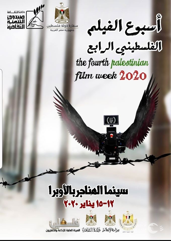تفتتح سفارة دولة فلسطين بالقاهرة وصندوق التنمية الثقافية، يوم الأحد المقبل الموافق 12يناير "أسبوع الفيلم الفلسطيني الرابع " بجمهورية مصر العربية، والذي سوف يستمر خلال الفترة 12 ـ 15 يناير بسينما الهناجر بدار الأوبرا المصرية .