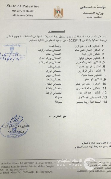 وبحسب قرار صادر عن الكيلة فإن اللجنة سيرأسها الدكتور محمد إبراهيم الرن، وعضوية 13 شخصاً.
